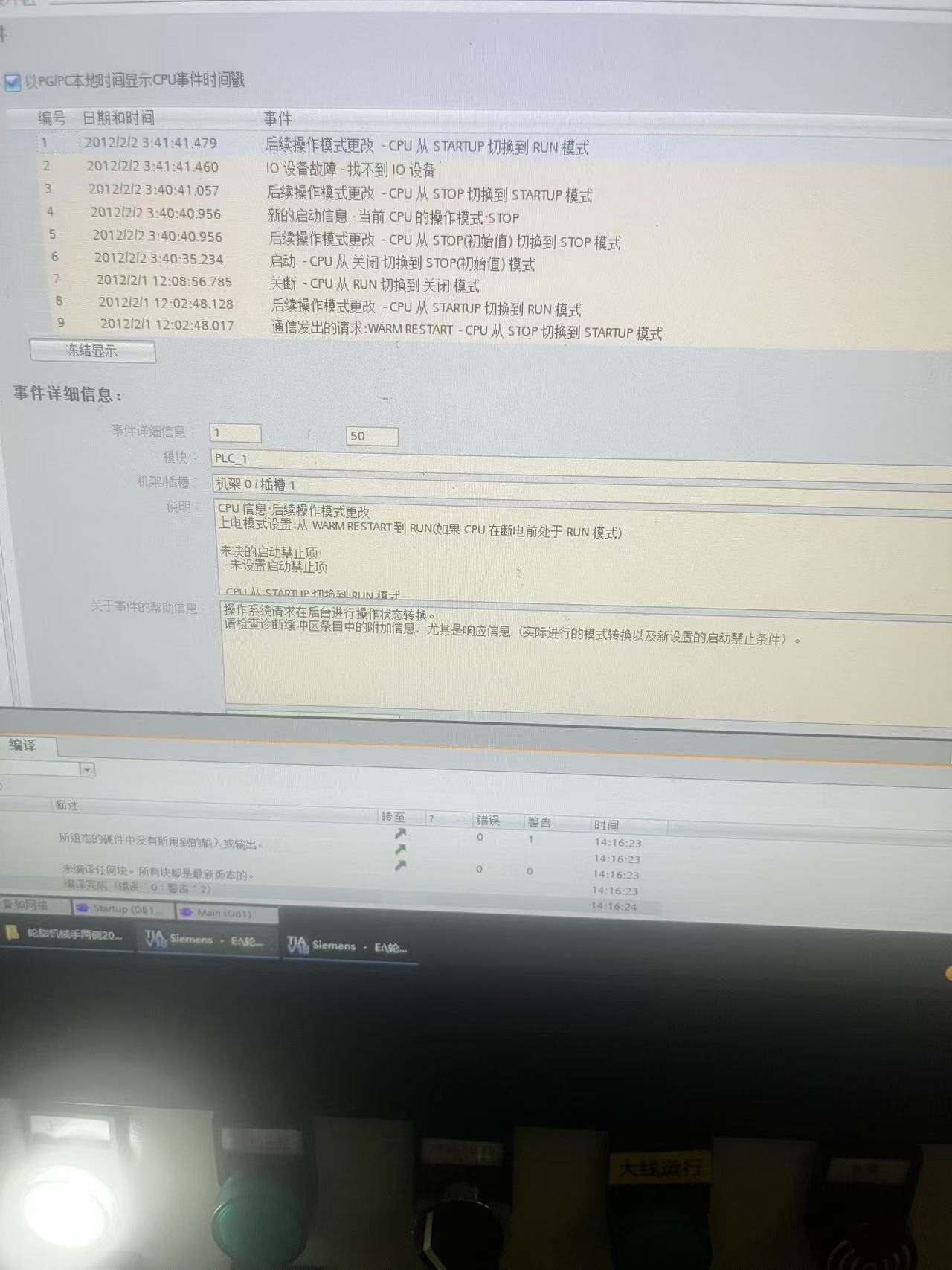 从你第二张图的事件日志可以看到,CPU一直在 “STOP ↔ STARTUP ↔ RUN” 来回切换。